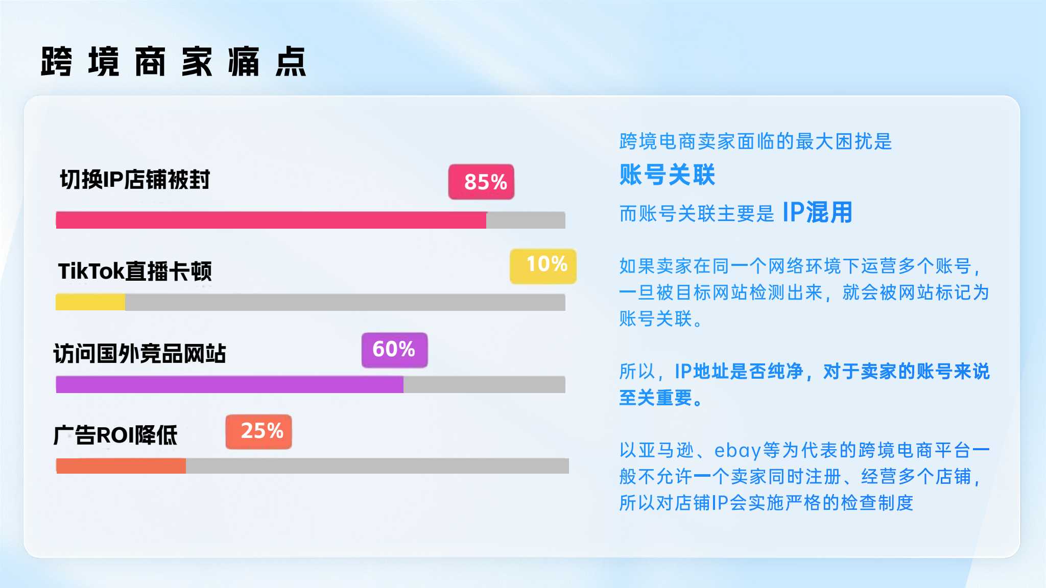 跨境電商行業(yè)專線方案:各電商賬號平臺防關聯(lián)解決方案提供純凈原生IP,保證賬號安全穩(wěn)定